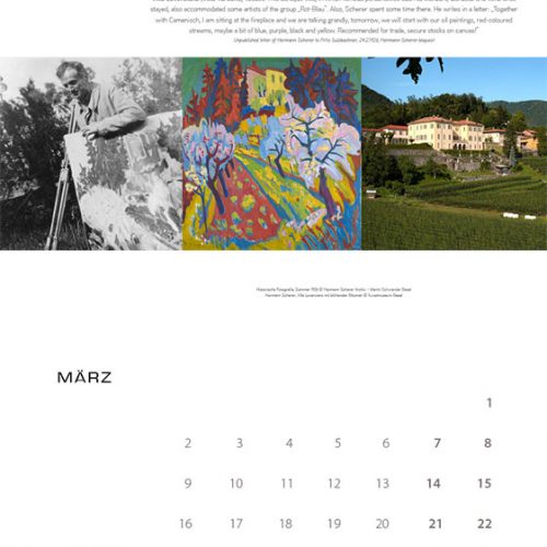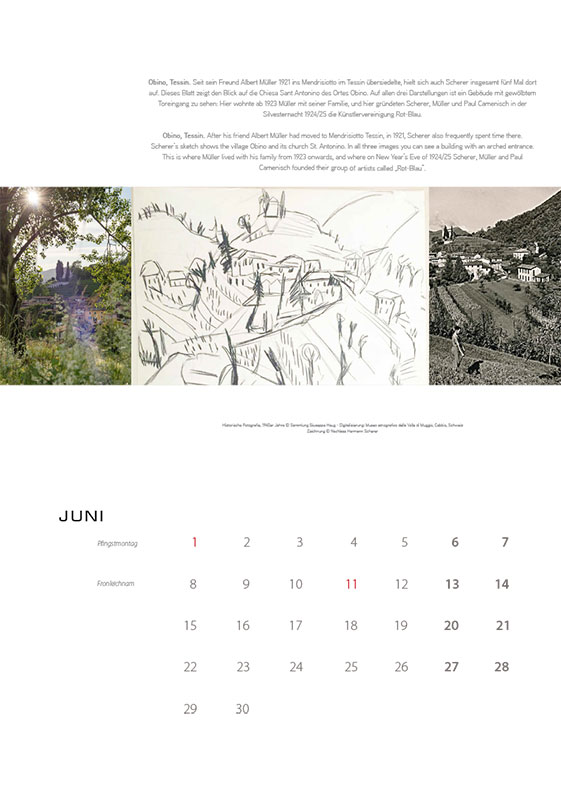 Die Kalenderbilder verbinden die biografischen Stationen Scherers in Basel, Davos und im Tessin mit der heutigen Zeit.